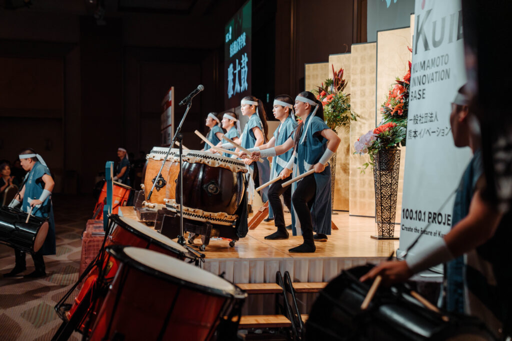 木村県知事の挨拶、桝田酒造様の鏡開きと乾杯、そして地元秀岳館高校の雅太鼓の演奏が披露され盛大に始まりました。